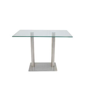This square bar-height table features a 12mm thick…