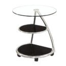 This accent trolley features a round 10mm thick tempered clear glass top supported by a silver metal frame with two tempered black glass shelves for additional storage/display space. The table can be easily moved around and secured in place with its lockable casters.