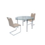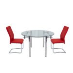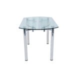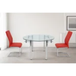 Enjoy flexible dining in style with the Friends & Daisy Transforming Dining Set. The Friends Extendable Dining Table starts as a space-friendly 32″ x 48″ rectangular glass table and, with the help of two clear glass extensions, converts into a generous 48″ round table for extra guests. A 12mm thick tempered clear glass top sits on four silver chrome metal pole legs, creating a light, airy look that suits modern apartments, breakfast nooks, and open-plan spaces.