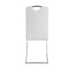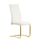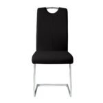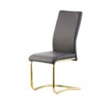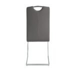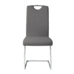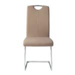 Complementing the table, six Daisy Dining Chairs bring soft, neutral sophistication. Each chair features a solid taupe leatherette upholstered seat with vertical-line stitching down the center for a tailored touch. A silver chrome metal handle on the back adds a practical, stylish detail, while the sturdy silver chrome metal base frame keeps the profile sleek and contemporary.