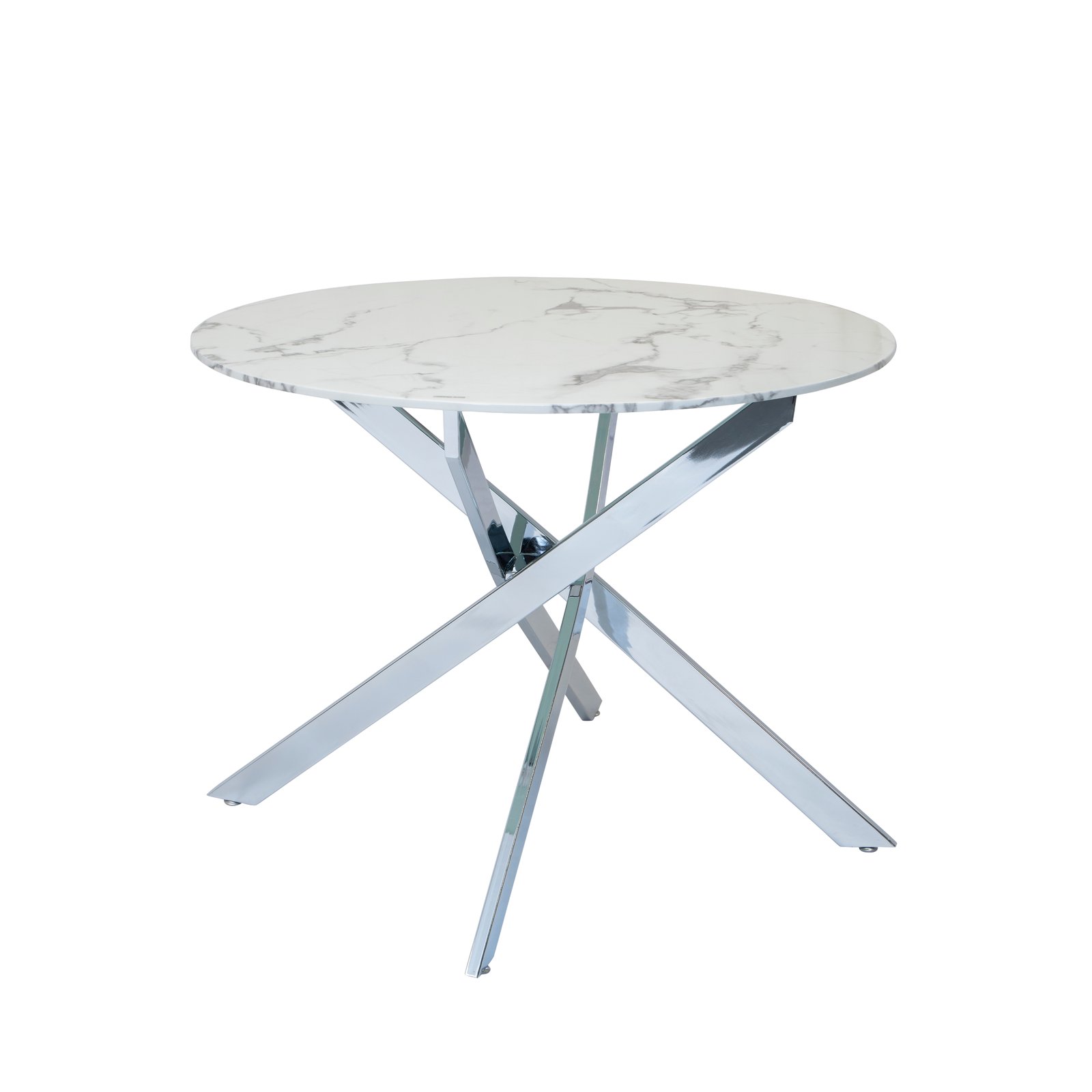 | Dining Table | Genesis Round 39″ | 700760 | 39 x 39 x 30” | Tempered Glass & Metal | Marble Finish-Silver |