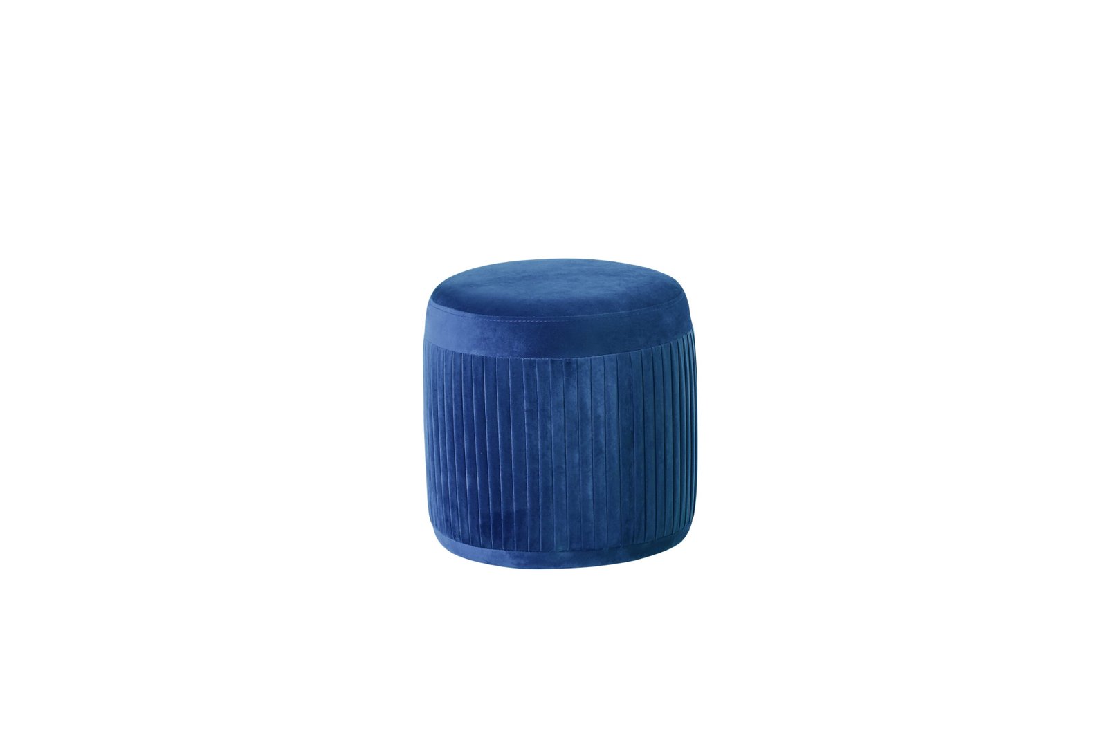 This versatile ottoman features a velvet fabric upholstered seat, barrel-shape design with pleated stitching down the sides and can be used as an extra seat or as a footrest.