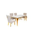 • Classic Curves: Cabriole-style legs on table and chairs for timeless elegance.