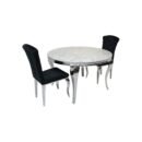Redefine refined dining with the Imperial Round & Lincoln Dining Set. The Imperial Marble Round Dining Table stands out with its solid 20 mm marble top, supported by a polished silver stainless-steel frame with graceful cabriole-style legs. Its round shape encourages connection, making it the perfect centerpiece for warm gatherings and sophisticated dining spaces.