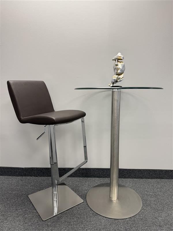 | Barstool | Olivia | 100017 | 16 x 17 x 21–31” (Adjustable Height) | Leather Upholstery & Stainless Steel | Brown-Silver |