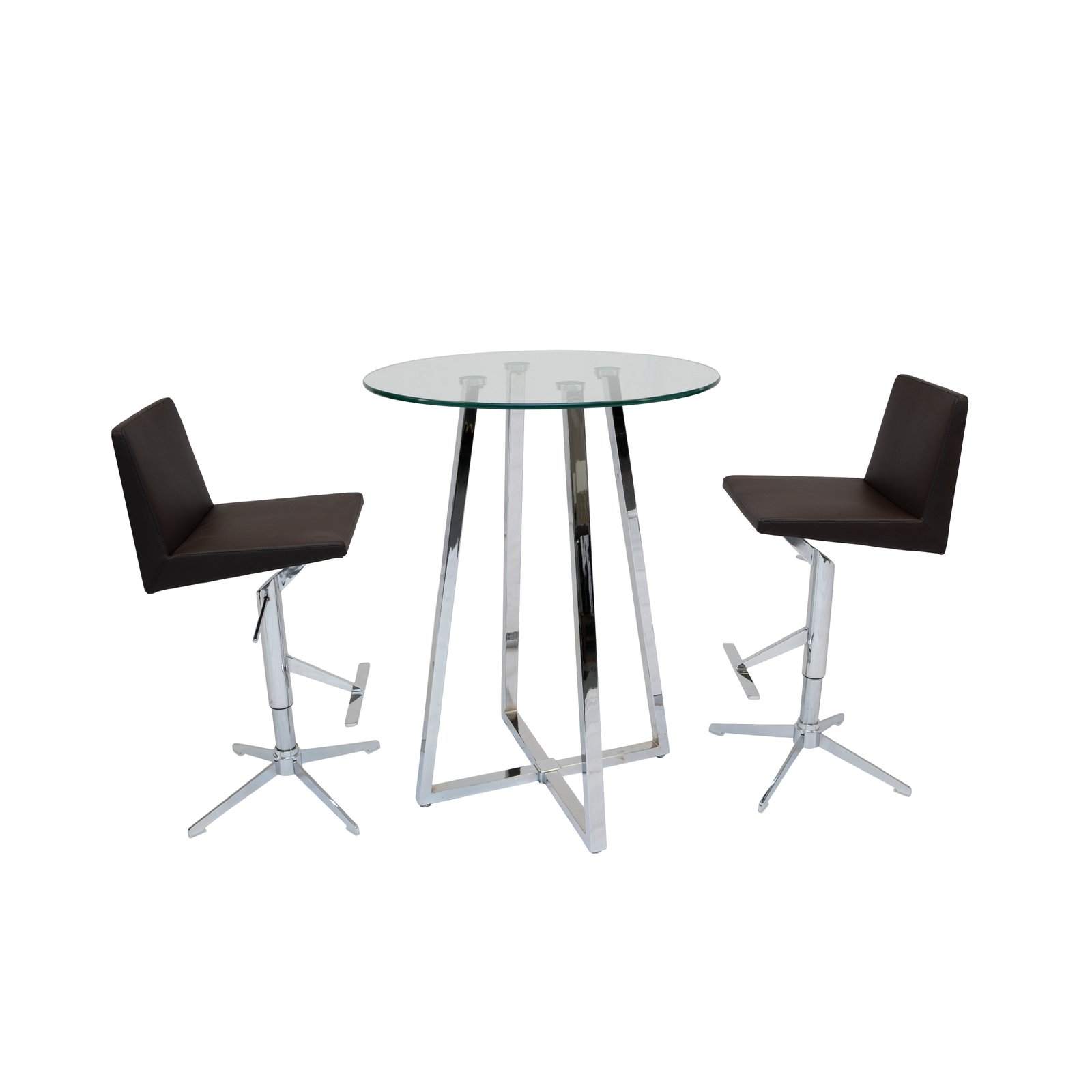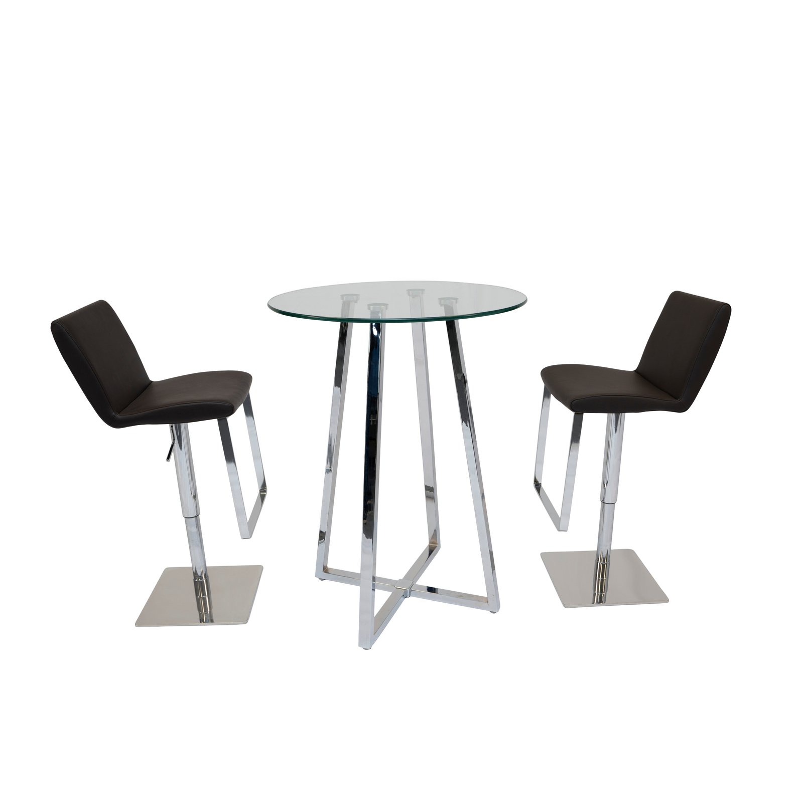 The Soho & Olivia Modern Bar Set combines contemporary glass styling with premium adjustable seating for a refined and functional bar environment. The Soho Round Bar Table features a 12mm thick tempered clear glass top supported by four chrome-finished metal pedestal frame legs forming a stylish X-shape. Its 31″ round surface and 42″ bar height make it ideal for home bars, kitchen nooks, and hospitality spaces looking for a modern aesthetic.
