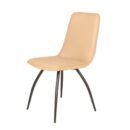 This chair features a beige colored leatherette upholstered seat with a corduroy back and sturdy matte black powder coated steel legs.
