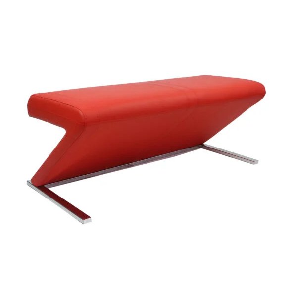 This bench features a leatherette upholstered Z-shaped padded seat with a sturdy silver chrome finished metal base.