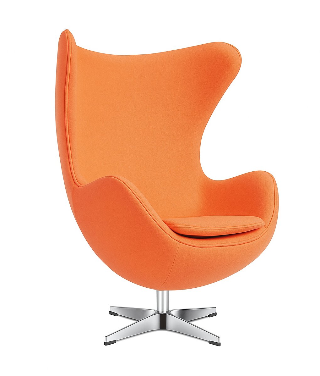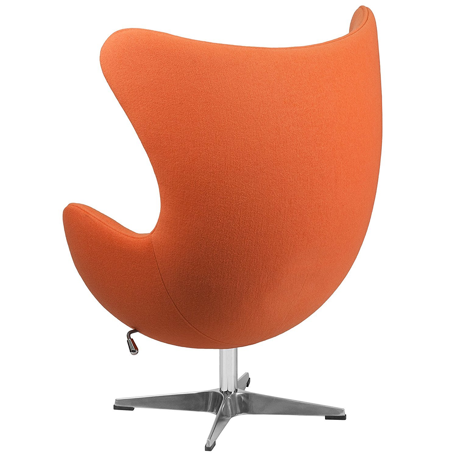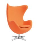 This classic lounge chair features a comfortable cashmere fabric or bonded leather upholstered and round contoured seat resembling an eggshell with a removeable padded seat cushion. The base is crafted from brushed aluminum and has built in swivel and tilt functionality with a 4-star leg design.