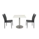 Give your dining nook a clean and contemporary upgrade with the Hurricane & Mark Modern Compact Dining Set. The Hurricane Dining Table (Clear Glass) features a crisp, minimalist 12mm thick tempered clear glass top in a versatile 30″ x 30″ square size—perfect for apartments, condos, studios, and cozy kitchens. It stands firmly on a brushed stainless-steel pedestal pole leg and a matching round stainless-steel baseplate, delivering both stability and a polished café-style aesthetic.
