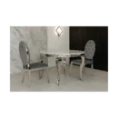 Bring timeless elegance to your dining area with the Imperial Round & Juliet Dining Set. The Imperial Marble Round Dining Table showcases a substantial 20 mm marble top resting on a polished stainless-steel frame with graceful cabriole-style legs, creating a refined focal point for intimate meals and sophisticated entertaining.
