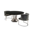 - Polished Metal Details: Silver stainless-steel accents on both table and chairs add a sleek, refined touch.