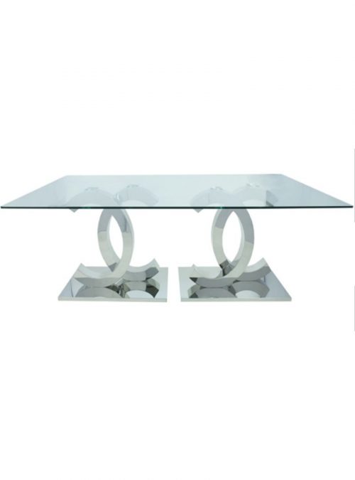 - Tempered clear glass 12 or 15mm top, middle leg and base plate made of shinny stainless steel.