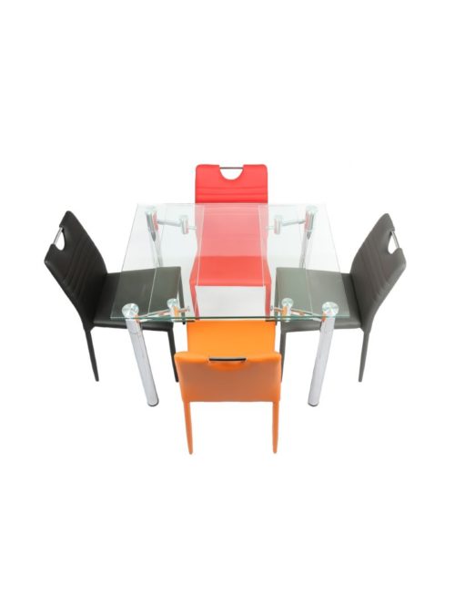 - Extendable clear tempered 12 mm glass top with chrome finish legs.