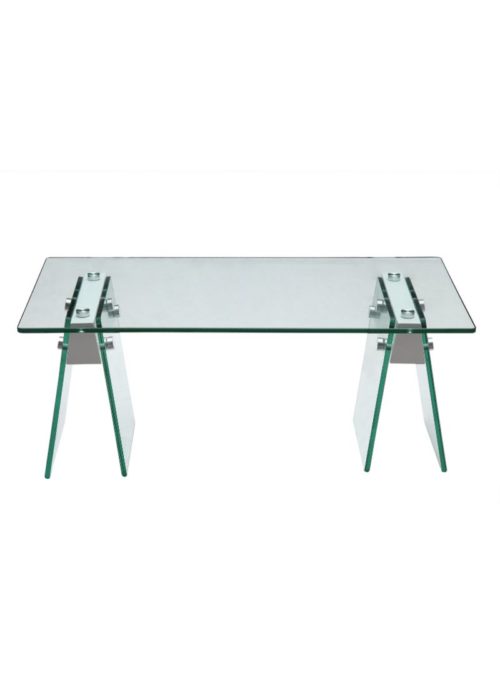 Tempered glass top and legs with hi gloss white joint block