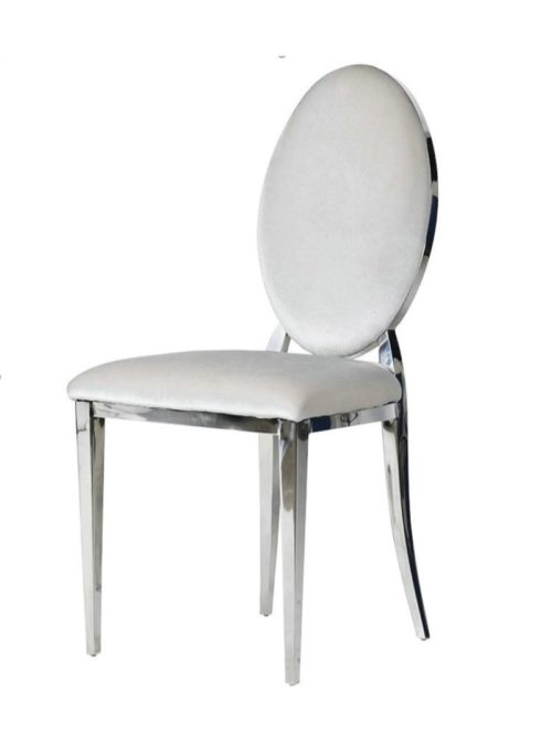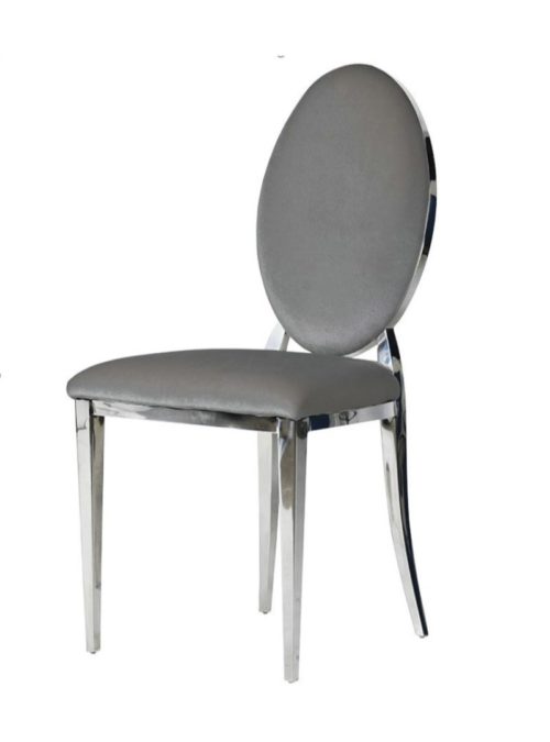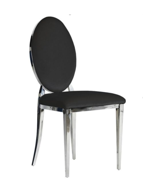 - Upholstery in PU with shiny stainless steel frame and legs.